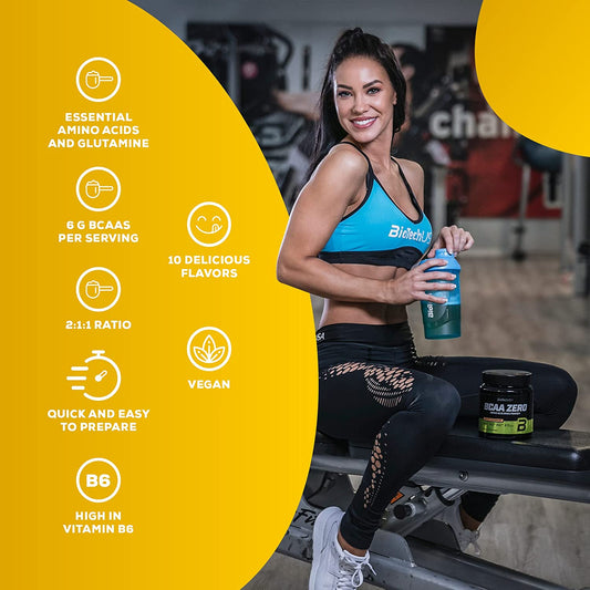 BioTechUSA BCAA Zero Sugar-Free Flavoured Amino Acid Drink Powder, with L-leucine, L-isoleucine and Vitamin B6, 360 g