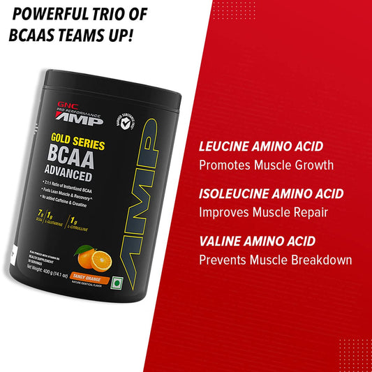 GNC AMP Gold Series BCAA Advanced | Fastest Muscle Recovery powder| Maximized Workout Performance | Formulated In USA | 7g BCAA | 1g L-Glutamine | 1g L-Citrulline| 400 gm