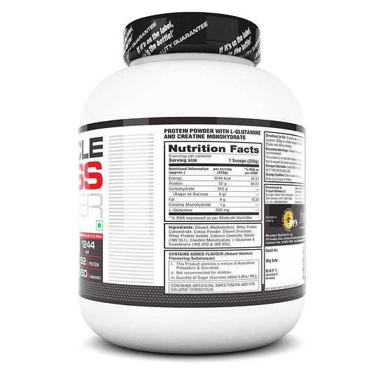 Fast&Up Mass Gainer 3kgs Powder| Pack of High Protein High Carbs| Added Vitamins, Probiotics & Enzymes |88^g Protein, 1655^Kcal Energy